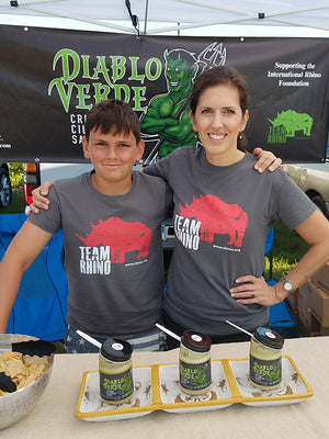 He wanted to raise more funds for IRF so Luke and his Mom, Traci started selling her amazing creamy cilantro sauce, Diablo Verde, to teachers, friends & neighbors. As people started buying it like it was oxygen, they gained a following quickly.